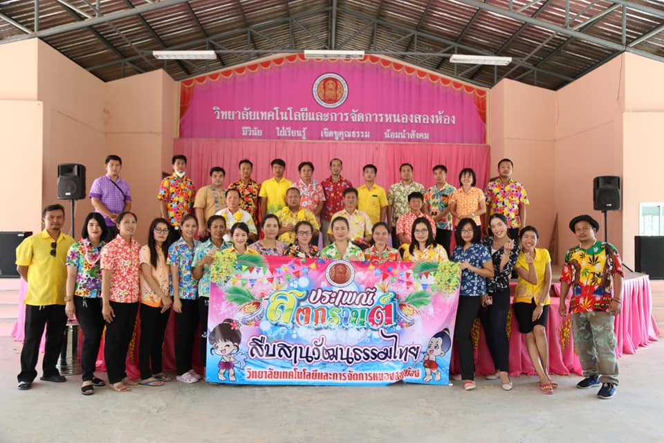 วันที่ 10 เมษายน 2562 วิทยาลัยเทคโนโลยีและการจัดการหนองสองห้อง จัดโครงการประเพณีสรงน้ำพระ รดน้ำดำหัว เทศกาลสงกรานต์ ประจำปี 2562 นำโดยคณะผู้บริหาร คณะครู บุคลากรทางการศึกษา ร่วมสรงน้ำพระ ขอพร พระพุทธรูปประทานพร องค์พระวิษณุกรรม และคณะครู เจ้าหน้าที่ บุคลากรทางการศึกษา ร่วมรดน้ำดำหัวขอพร แก่คณะผู้บริหาร โดยมีนายถาวรสิทธิ์ อินทะแสง ผู้อำนวยการวิทยาลัยเทคโนโลยีและการจัดการหนองสองห้อง กล่าวให้โอวาส และ ให้พรแก่คณะครู เจ้าหน้าที่ และบุคลากรทางการศึกษา ทุกคน
