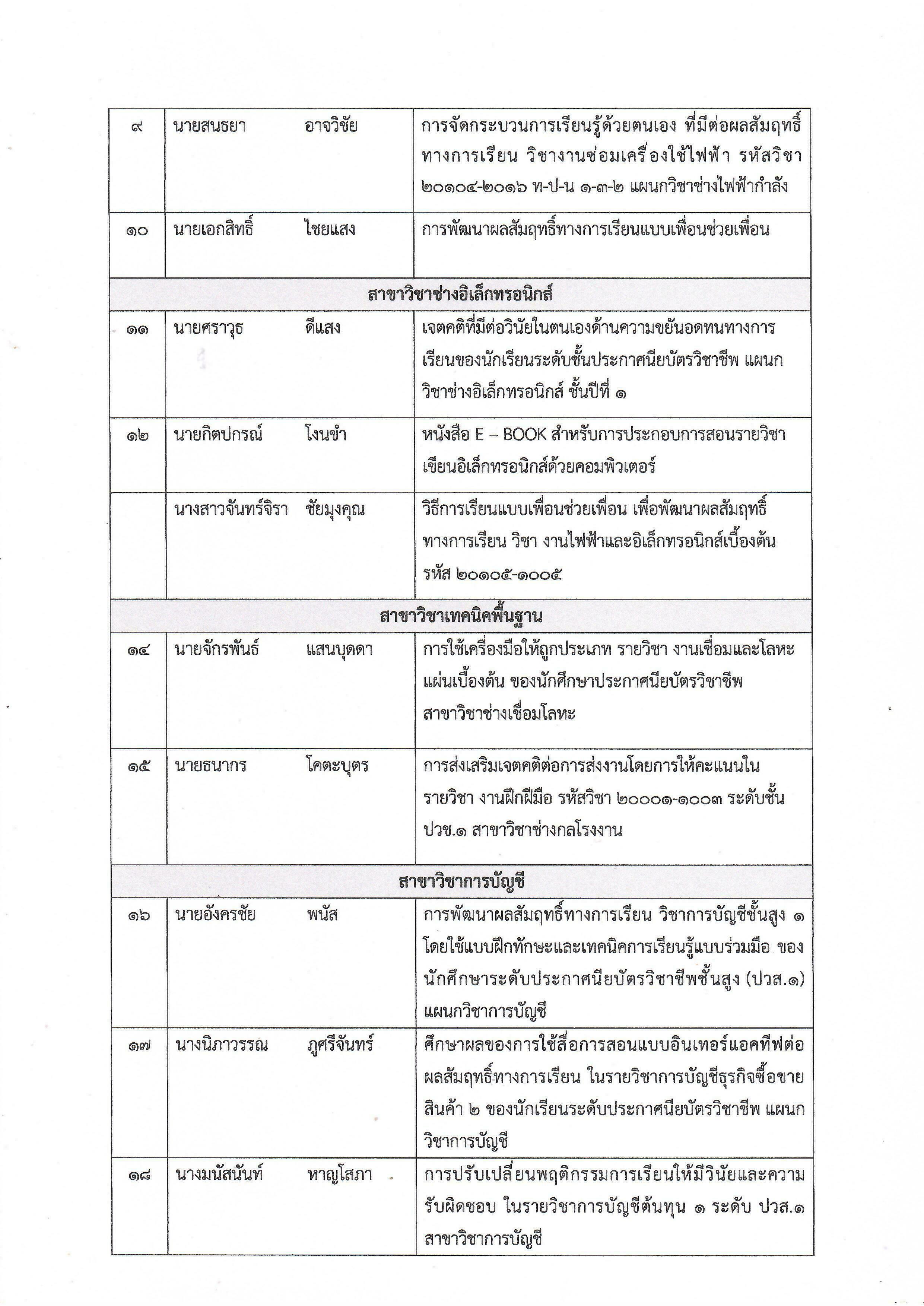รายชื่อผลงานวิจัยในชั้นเรียนของครูผู้สอน ภาคเรียนที่ 1/2568