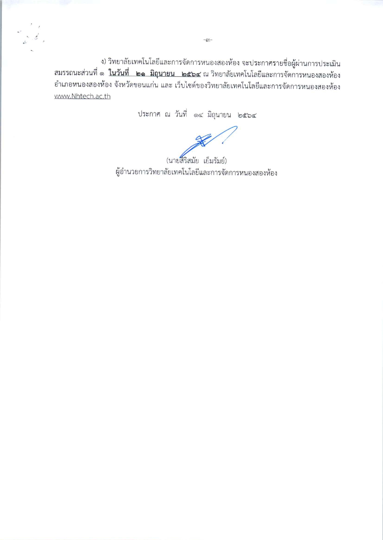 ข่าวประกาศ วก.หนองสองห้อง