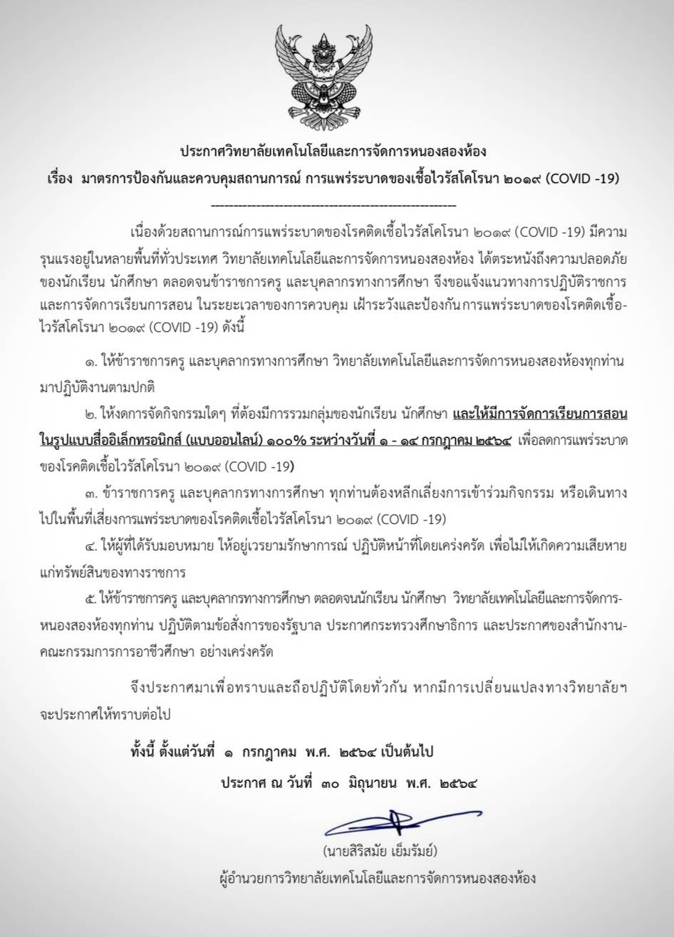ประกาศแนวทางการปฎิบัติราชการและการจัดการเรียนการสอน