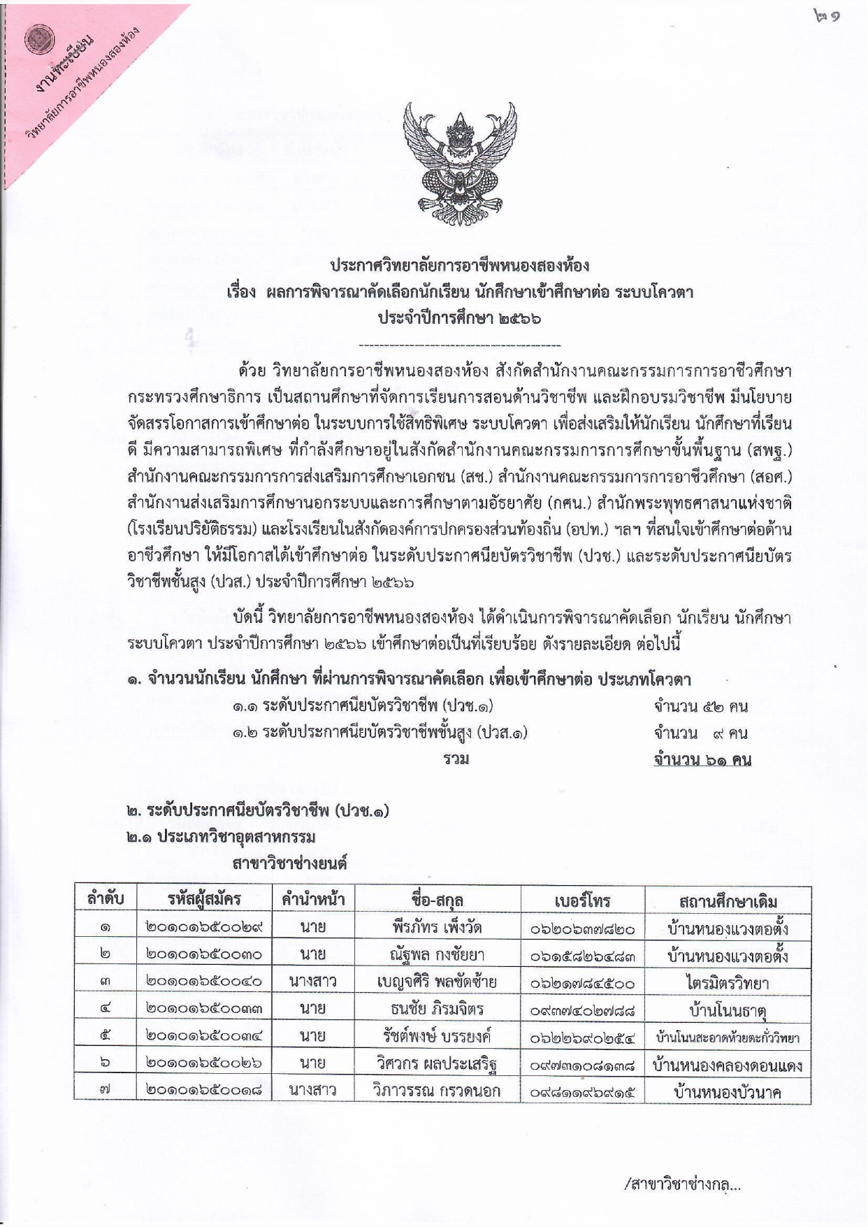 ประกาศผลการพิจารณาคัดเลือกนักเรียน นักศึกษา ระบบโควตา ปีการศึกษา 2566